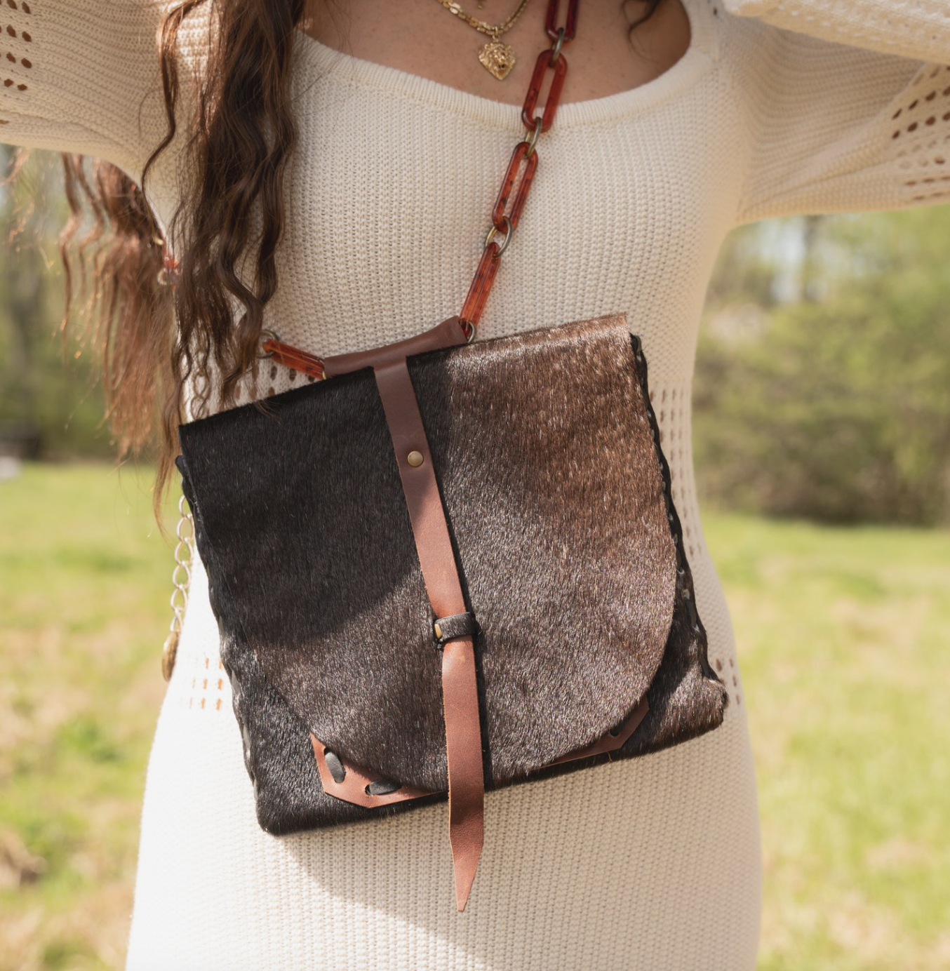 I initially entered apparel design school to one day go into bridal design, however, for my senior runway show, I incorporated a myriad of different hides in my designs. After graduation, I decided I wanted to learn old Native American leatherworking techniques to create custom, leather bags - thus began my handcrafted leather goods journey. I have Creek Indian heritage in my family line, so I thought it would be a neat way to pay homage to my ancestry.